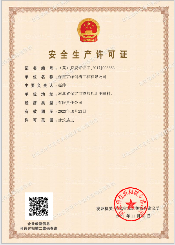 公司主要致力于鋼結構設計、制作、安裝、銷售為一體的鋼結構施工專業企業。成立于2010年,注冊資金1200萬元。公司擁有國內先進的數控自動焊接設備、H鋼結構生產線、CZ鋼快速切換一體機、自動剪切壓板機等,優良的制作加工車間及檢測設備。公司秉承“質量求生存,管理出效益”發展理念,組建了一支高素質、高水平的團隊以及責任明確、職責清楚、獎罰分明的管理體系。